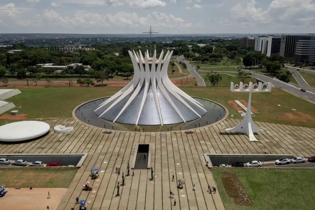 Brasilia fue concebida para representar un proyecto de país, y la Catedral Metropolitana aparece como una de las construcciones que mejor traducen esa intención. La obra firmada por Oscar Niemeyer ganó fama por escapar de la forma tradicional de iglesias, apostando en una geometría que llama la atención incluso a la distancia.