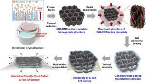 Diagrama esquemático del proceso de fabricación de la batería extensible. (Imagen cortesía del Instituto de Ciencia y Tecnología de Corea).
