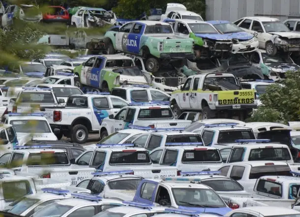 Más de 4.000 vehículos de la Policía Bonaerense están acumulados en un cementerio de vehículos de Tolosa, La Plata. Comprados por valores cuestionables y con vida útil promedio de tres años, los vehículos se convierten en chatarra tras colisiones, fallas mecánicas o burocracia. Denuncias señalan gastos por encima del mercado y falta de mantenimiento.