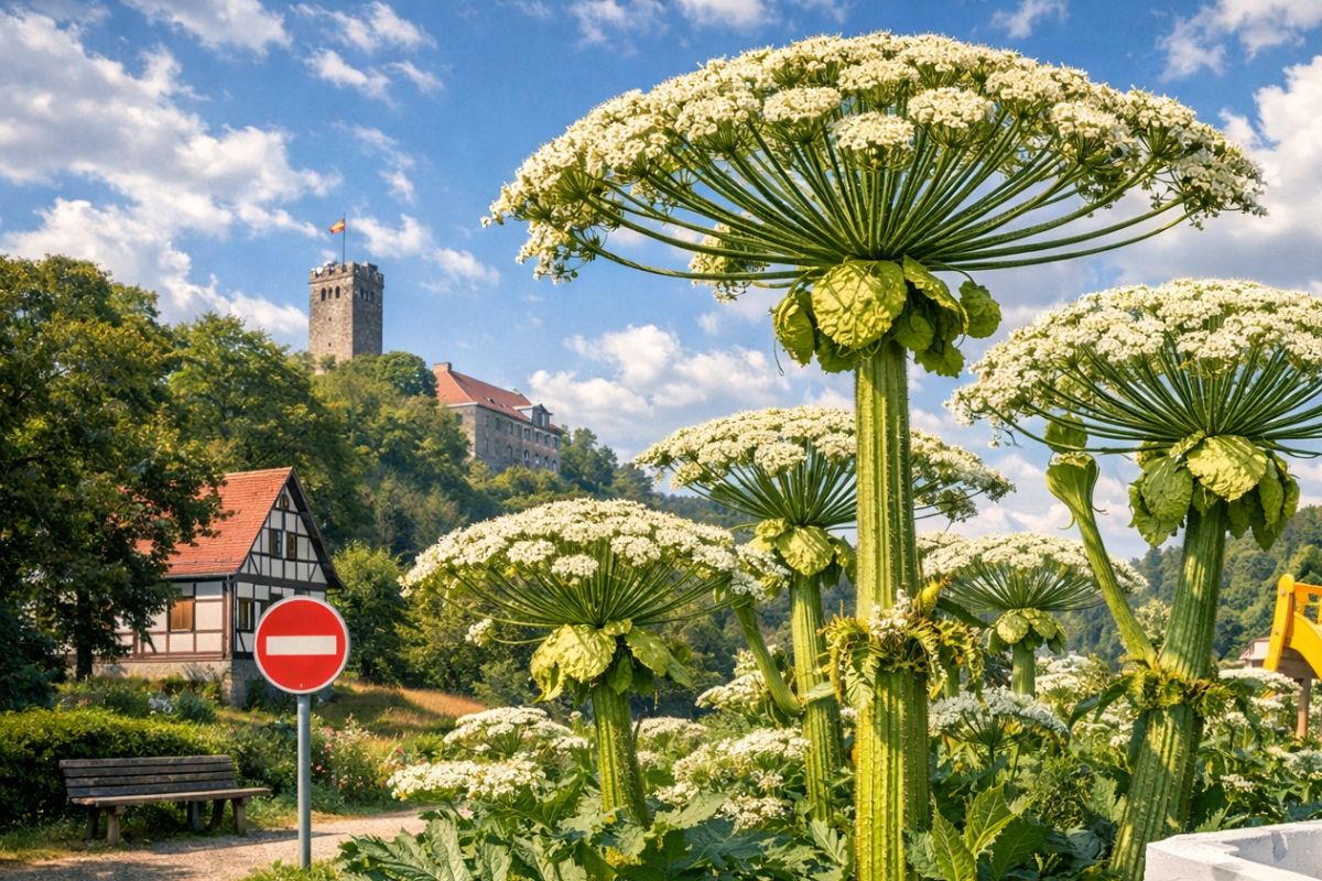 Planta tóxica de 4 metros, prohibida en España, ya invade jardines y parques en Turingia, Alemania: voluntarios dicen que arrancar no es suficiente, las raíces brotan de nuevo y las semillas duran años; los residentes piden glifosato para erradicar.