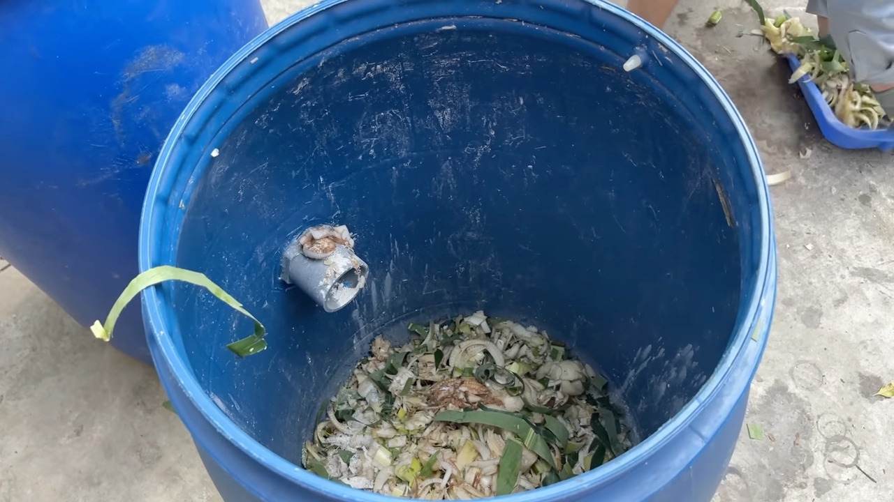 Guía Práctica De Sistema De Biogás DIY Muestra Un Arreglo Simple Con Dos Barriles Azules Que Transforma Residuos Orgánicos En Gas De Cocina Gratis Durante Todo El Año En Casa