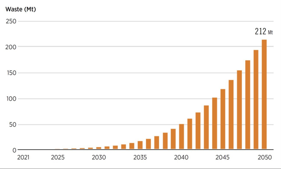 ¿Esto ocurre solo en China? No. En la Agencia Internacional de Energías Renovables (IRENA), hicieron los cálculos y sus estimaciones son contundentes: «A medida que el mercado fotovoltaico crece, también aumentará el volumen de paneles retirados, y se esperan grandes cantidades de residuos anuales para principios de la década de 2030». Para ser más precisos, sus técnicos esperan que los residuos de instalaciones fotovoltaicas acumuladas a nivel internacional pasen de 0.2 Mt en 2021 a 4 Mt en 2030, casi 50 Mt en 2040 y más de 200 Mt en 2050. «Los países miembros del G20 proporcionarán la mayor parte de los residuos previstos», concluyen.