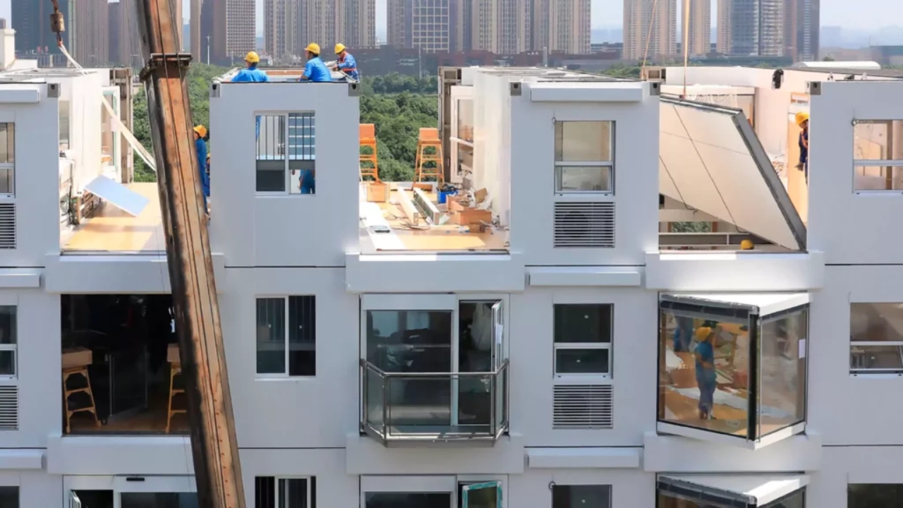 La escena parecía sacada de una película, pero sucedió de verdad en China: un edificio residencial entero se levantó en poco más de un día, con módulos llegando listos y siendo apilados en el sitio.