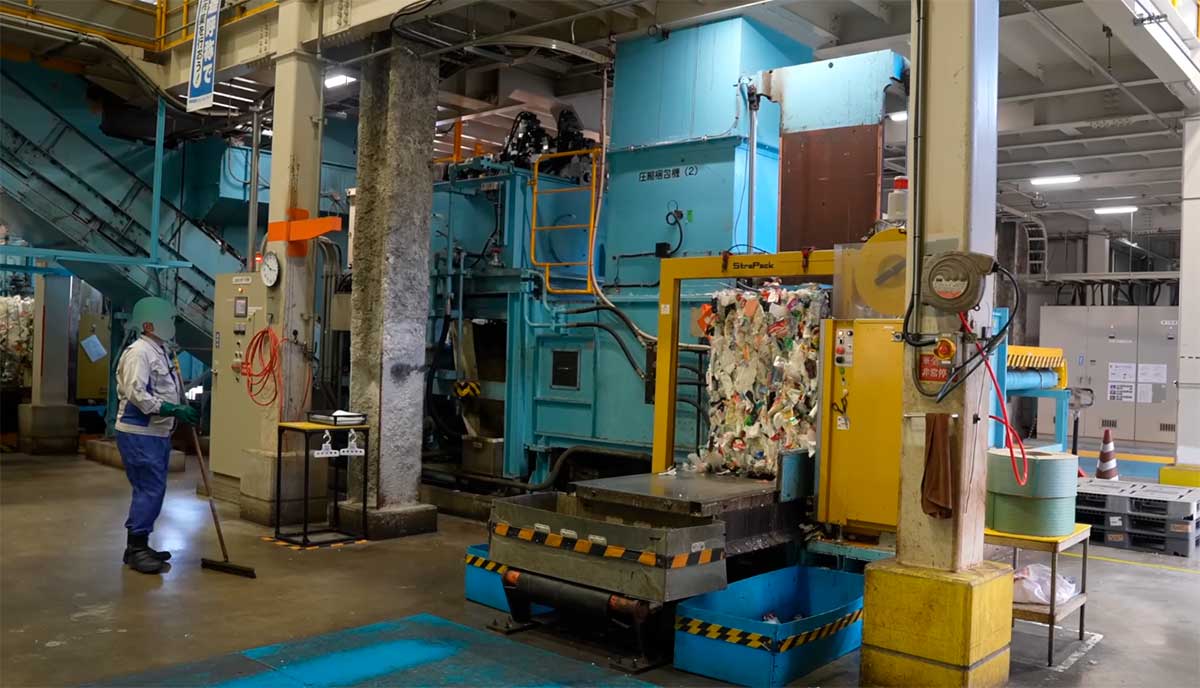 Tras la eliminación de sustancias extrañas, el plástico pasa por una máquina de embalaje por compresión. De acuerdo con el proceso observado en Nagoya, la compresión aumenta significativamente la eficiencia del transporte, permitiendo que grandes volúmenes sean movidos de una sola vez. Los fardos compactados son luego cargados en camiones para su transporte a las instalaciones de reciclaje especializadas.