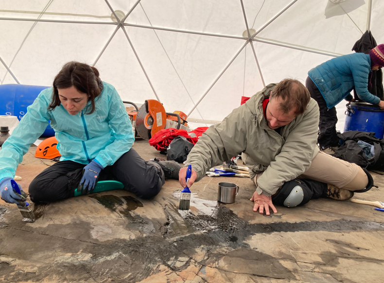 El esqueleto de Fiona es el primer ejemplar de ichthyosaurio completamente excavado en Chile. La excavación se realizó en 2022, en el borde del glaciar, en condiciones desafiantes.