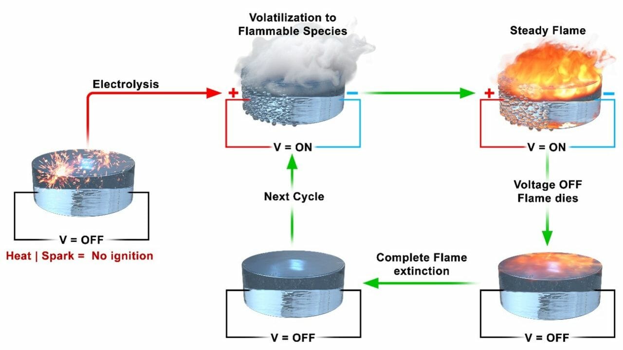 Según Wang, una vez que la corriente fue desligada, la llama desapareció y fue posible repetir el proceso indefinidamente, aplicando voltaje, viendo la evaporación, encendiendo el vapor para que ardiera y luego apágándolo. Los científicos estaban entusiasmados por encontrar un sistema que pudiera iniciar y detenerse tan rápidamente.