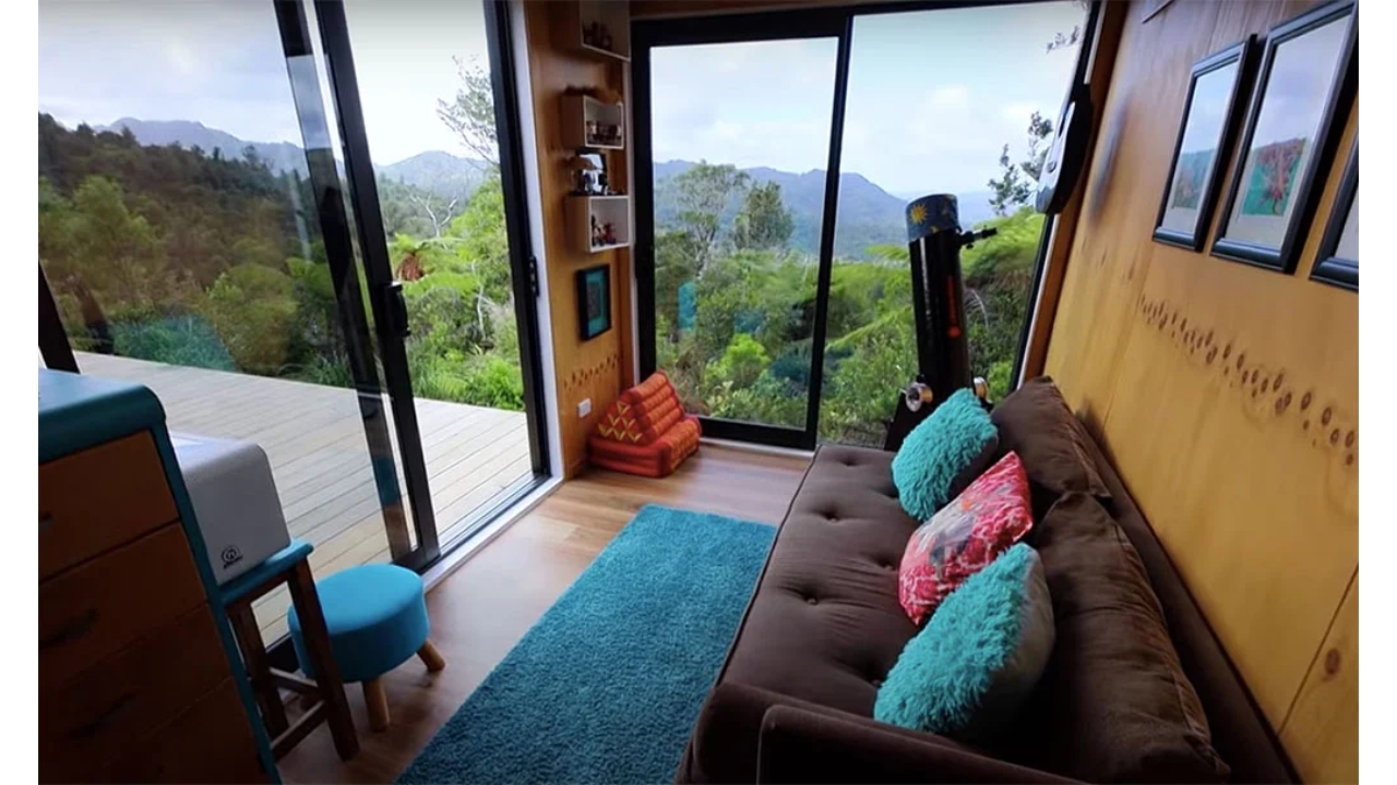 La decisión de Rosie, propietaria de la casa, comenzó con la venta del inmueble en Auckland y la compra de un terreno en una reserva privada. Allí, cada lote permite ocupar solo hasta 5% del área con construcciones, mientras que el resto del espacio queda legalmente destinado a la conservación.