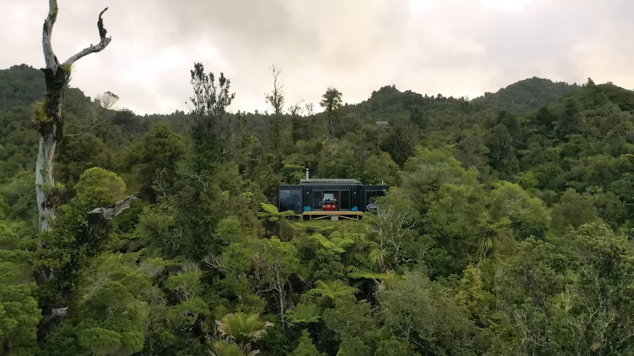 Ahurewa es una casa de 100% de autosuficiencia montada con contenedores marítimos en medio de un bosque de Nueva Zelanda, pensada para operar sin conexión con redes públicas. La propuesta va más allá de la estética industrial, ya que transforma la vivienda en una pequeña infraestructura capaz de mantener confort y servicios esenciales incluso lejos de cualquier abastecimiento externo.