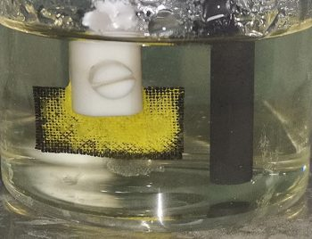 Este nuevo tejido recubierto acumuló eficazmente uranio (en amarillo) en su superficie a partir del agua de mar contaminada con uranio