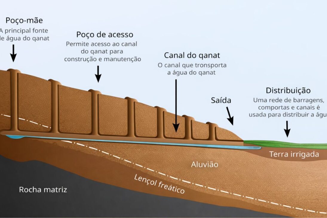 En el desierto de Irán, agua y tiempo siempre han caminado juntos. En un territorio con regiones que reciben menos de 50 mm de lluvia por año y sin ríos permanentes en amplias áreas, la supervivencia dependió de una respuesta técnica tan simple como sofisticada: captar agua subterránea y conducirla por gravedad, sin bombas, sin combustible, sin prisa.