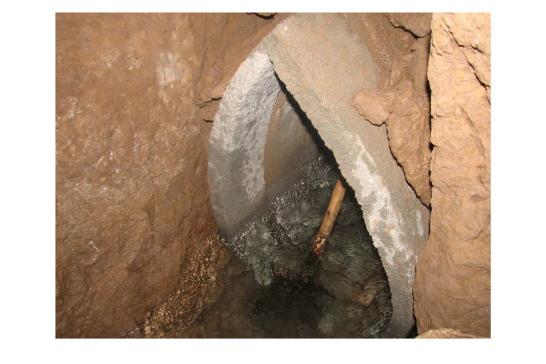 A lo largo del trayecto, se abrían pozos de ventilación cada 20 a 50 metros. Estos pozos permitían remover sedimentos, ventilar la excavación y crear accesos de mantenimiento. Vistos desde arriba, forman las líneas de «cráteres» alineados que cortan el desierto iraní, una marca visible de una red invisible.