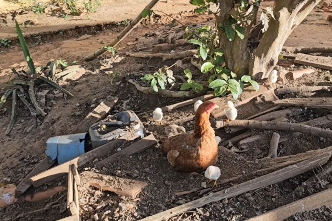 Las gallinas caminan libres, los pollitos corren por el patio y son protegidos de halcones y otros bichos.