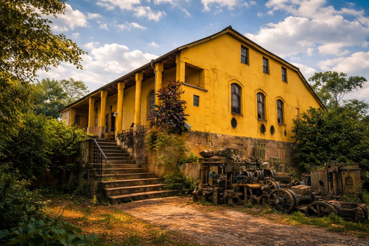 Exploradores entran en un caserón preservado con fábrica dentro y encuentran un ático y un sótano llenos de rarezas: maletas nunca usadas, vajillas nuevas, sacos de monedas y una moto Monarque 1964 de único dueño que parecía una posada inacabada.