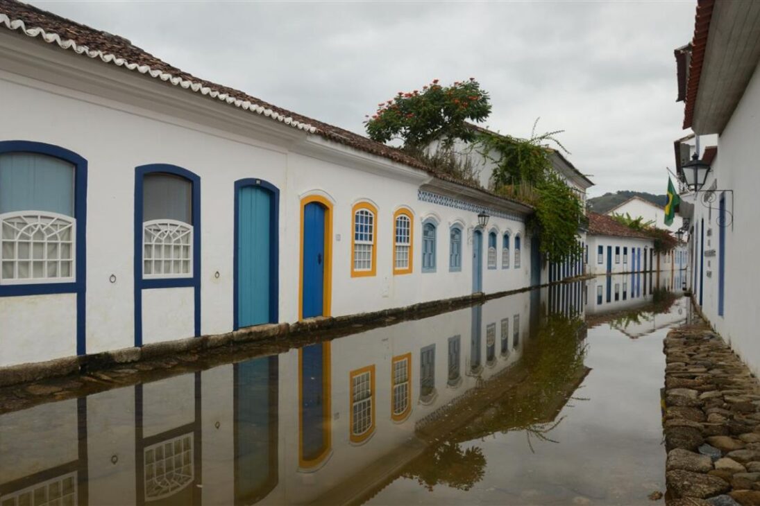 Otro encanto es el trazado urbano planeado para coexistir con el mar. En algunos momentos de marea más alta, el agua entra discretamente en partes de las calles, creando un efecto visual que sorprende a quienes visitan Paraty por primera vez y refuerza la relación íntima de la ciudad con la bahía.