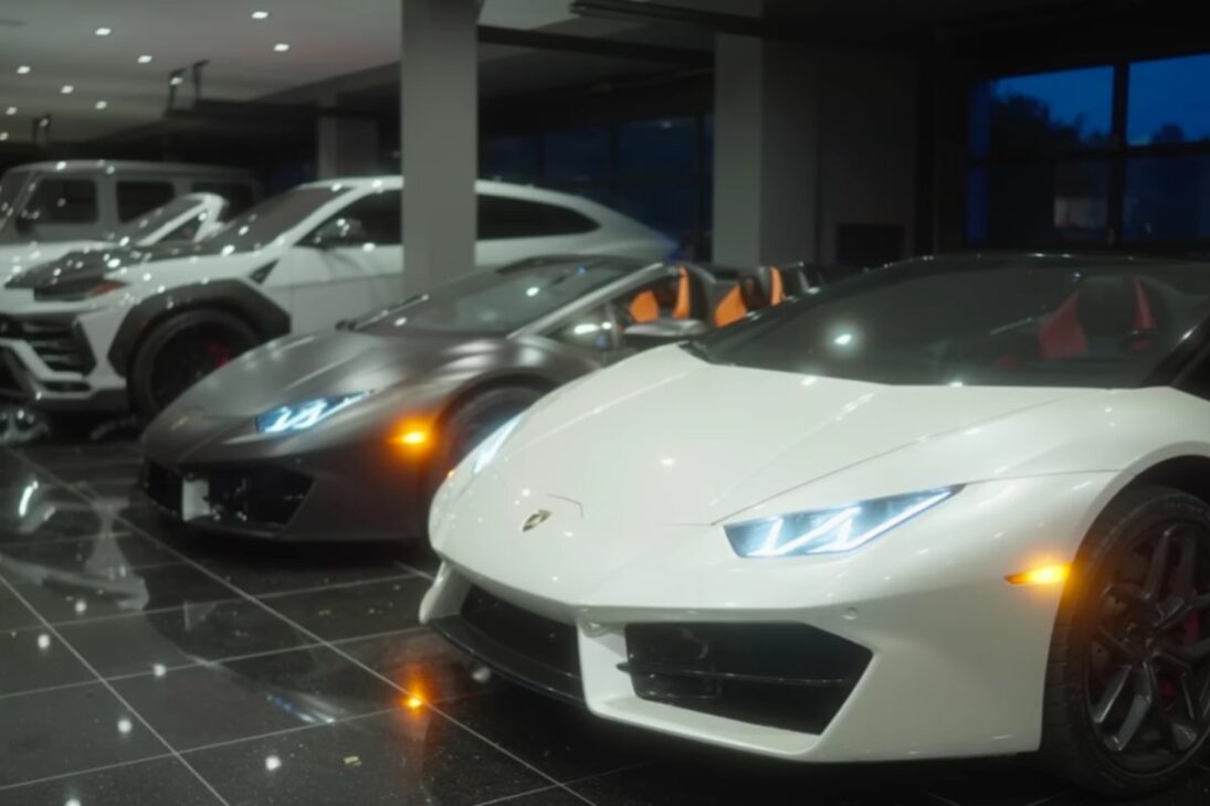 un Ferrari F8, tres Lamborghinis (incluyendo Huracán convertibles y Urus, en diferentes colores), un Rolls-Royce, una G-Wagon y una Mercedes S 500, además de otros modelos de alto estándar que entran y salen según los acuerdos de uso.