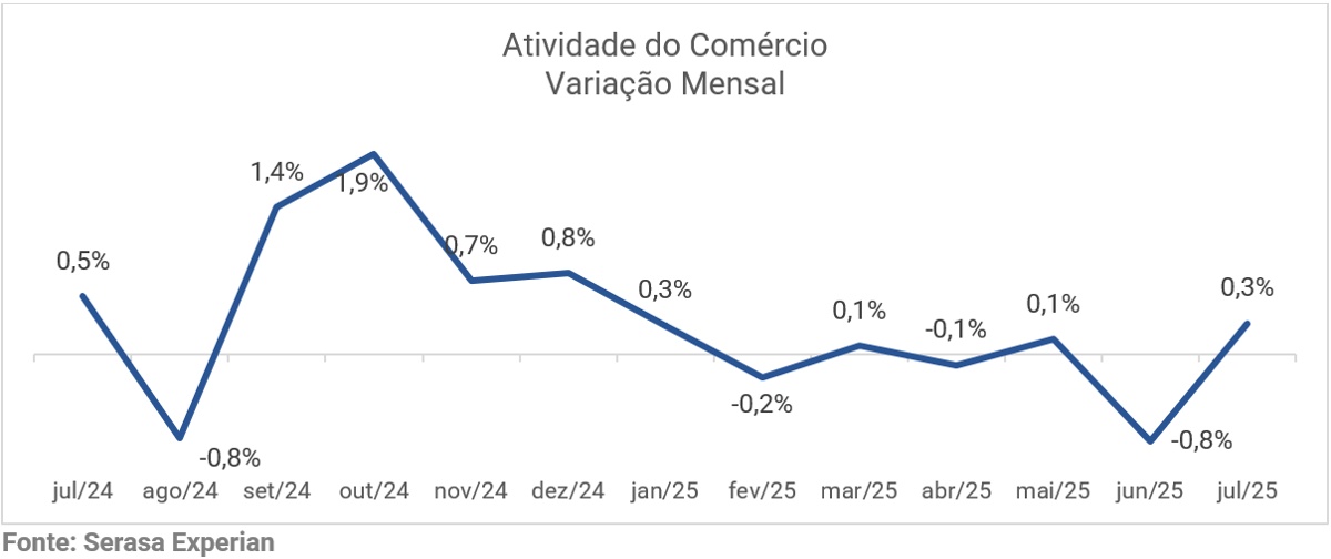 El comercio brasileño registró crecimiento en julio de 2025, según la Serasa Experian.