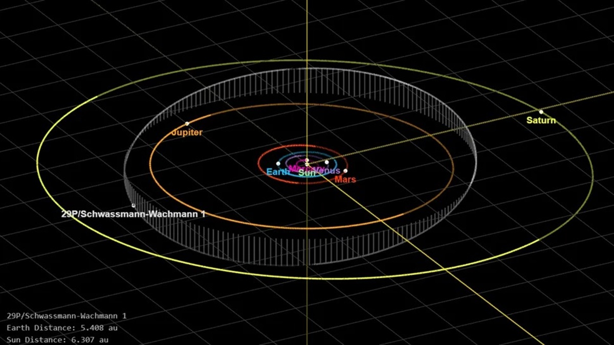 El cometa 29P tiene una órbita aproximadamente circular alrededor del Sol y está más distante de nuestra estrella que Júpiter, lo que hace que su criovulcanismo sea algo sorprendente. (Crédito de la imagen: NASA/JPL/Small-Body Database Lookup)