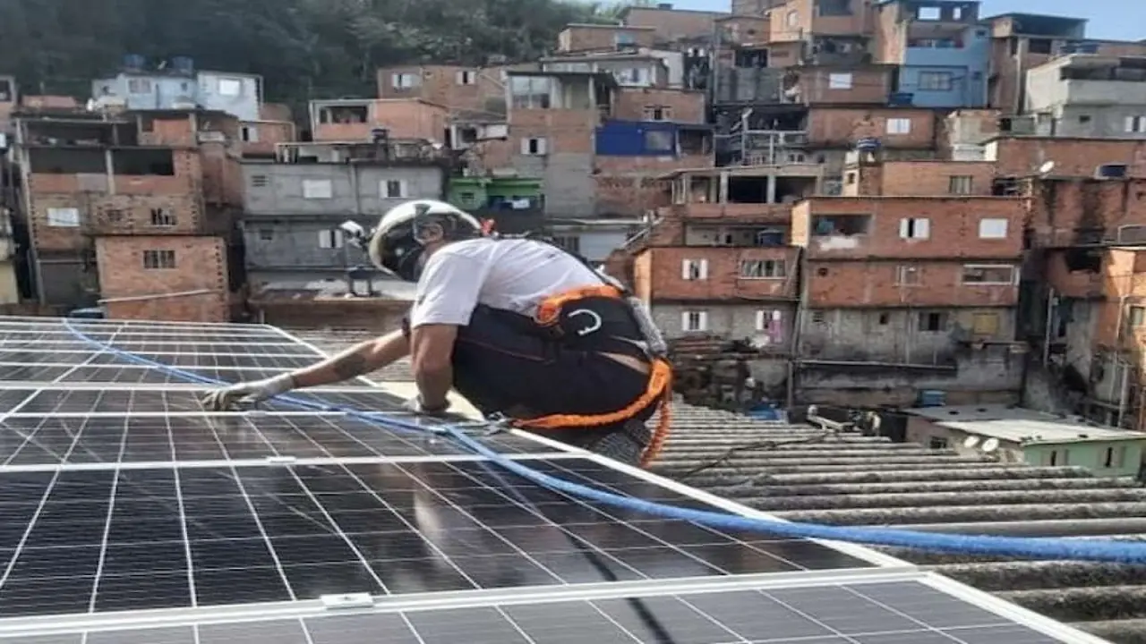 Instalación de los Paneles Solares en la Favela Marte, Primera Comunidad de América Latina en Ser Abastecida con Energía Solar