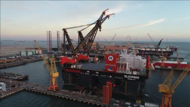 “En el sector eólico offshore, la Heerema ve un crecimiento significativo en el tamaño de los aerogeneradores y fundamentos, lo que requiere equipos especializados para su instalación. Con sus grandes grúas capaces de elevar a alturas de 175 metros y una capacidad de elevación combinada de 20.000 toneladas, el Sleipnir está muy bien posicionado para acomodar esta tendencia de aerogeneradores offshore cada vez más grandes”, dijo la empresa holandesa.