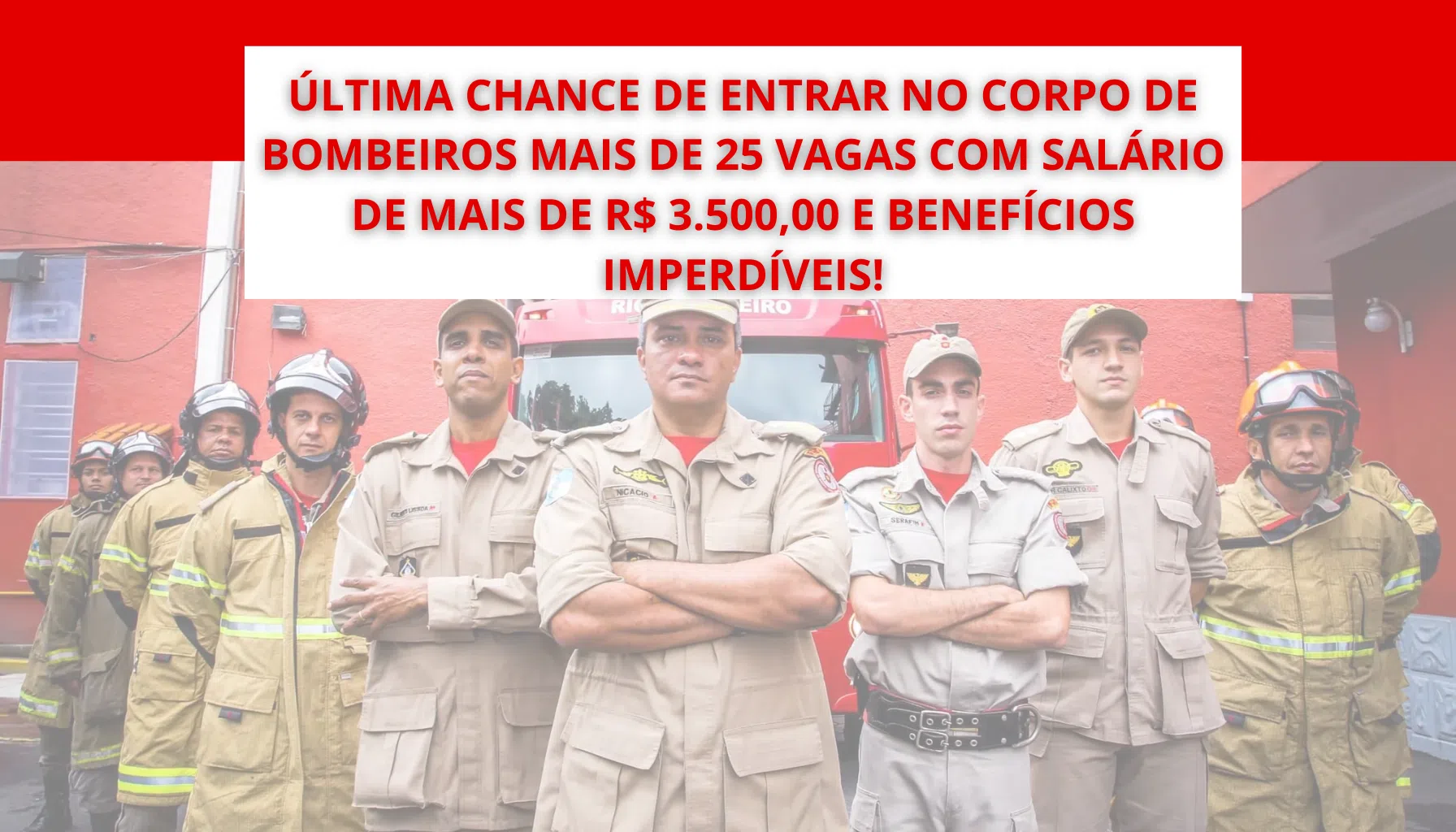 ¡Última Oportunidad de Ingresar en el Cuerpo de Bomberos de Bahía! Con solo el nivel medio, puedes competir por una de las 30 vacantes para Oficiales. Sueldos de hasta R$ 3.507,78 y beneficios imperdibles. Las inscripciones están abiertas hasta enero de 2025. ¡Aprovecha esta oportunidad única de transformar tu vida y carrera!
