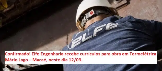 El Click Petróleo y Gas confirmó con el sector de Recursos Humanos de Elfe Engenharia, esta mañana del jueves 12, sobre las vacantes anunciadas para la obra en la Termelétrica Mário Lago – Macaé.