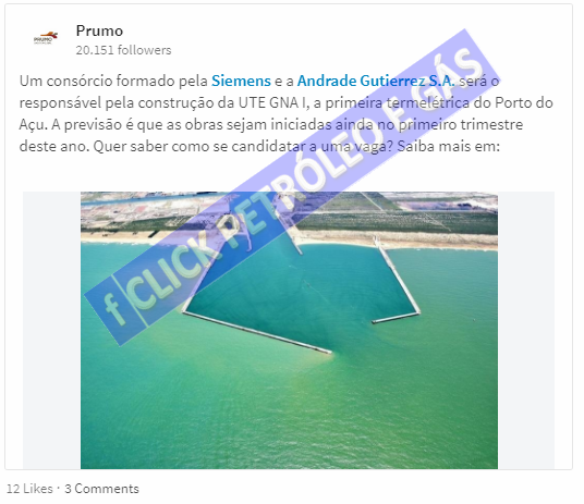 - Para las vacantes directas en la termoeléctrica después de su conclusión, deben dejar sus currículos en www.vagas.com/prumologistica. Vean la publicación oficial aquí.