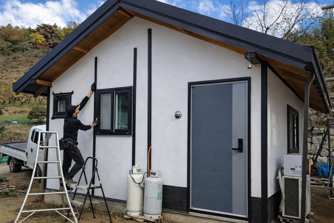 Paneles, mantas y placas cierran las paredes y transforman el esqueleto en una casa tradicional habitable