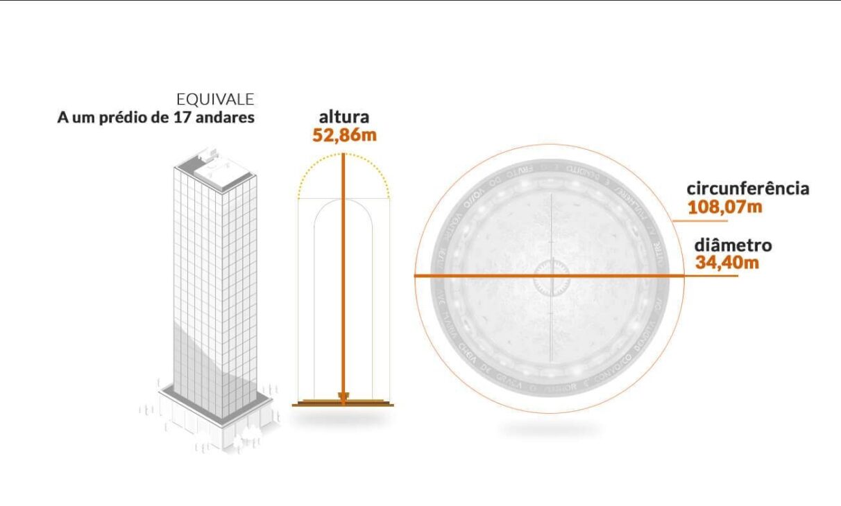 Símbolo Máximo de la Unión entre Fe y Ingeniería, la Cúpula de la Basílica de Nuestra Señora Aparecida Impresiona por Sus Dimensiones Monumentales y por la Precisión de Su Construcción. Con 70 Metros de Altura, 34 de Diámetro y Revestida por 5 Millones de Pastillas Coloridas, Ella Representa el Corazón del Mayor Santuario Mariano del Mundo y uno de los Marcos Arquitectónicos más Admirados de Brasil
