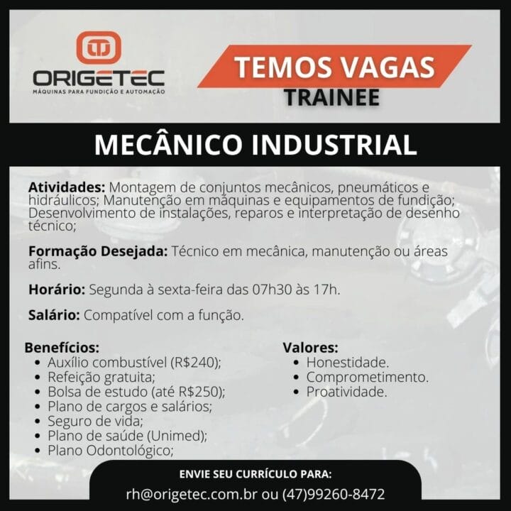 ORIGETEC, empresa líder en la fabricación de máquinas para fundición y automatización, está en expansión y busca profesionales comprometidos y proactivos para integrar su equipo. Si estás en busca de crecimiento profesional y deseas trabajar en un ambiente dinámico e innovador, consulta las vacantes disponibles publicadas esta semana y envíanos tu currículum.