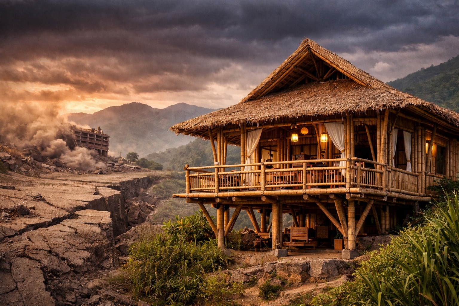 En abril de 2016, un terremoto de magnitud 7.8 golpeó la costa de Ecuador y devastó ciudades como Manta. Edificios de concreto colapsaron, calles se abrieron y barrios enteros desaparecieron. En medio del paisaje de destrucción, las estructuras hechas de bambú permanecieron intactas.