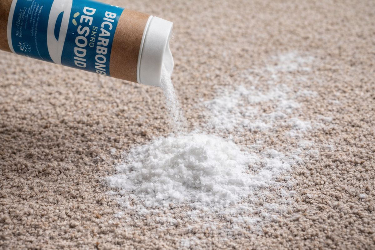 Echar bicarbonato de sodio seco directamente en la alfombra neutraliza los olores de sudor y comida sin mojar las fibras y te permite olvidarte de la aspiradora por semanas usando un producto que cuesta menos de cinco reales.