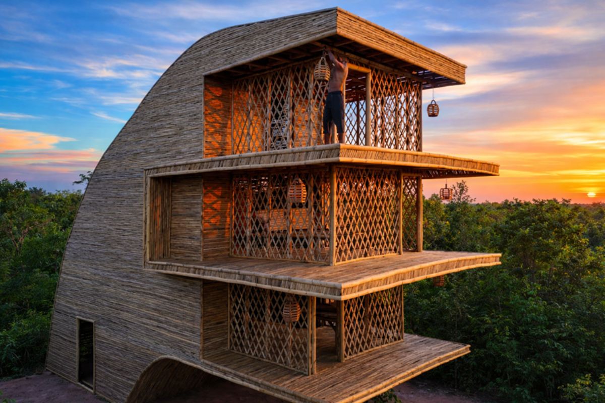 Esta Construcción Llama La Atención Porque Muestra, En La Práctica, Que Una Casa De Bambu De 3 Niveles Puede Ser Elevada, Cerrada Y Funcional Cuando Hay Lógica Estructural Clara Y Ejecución Cuidadosa.