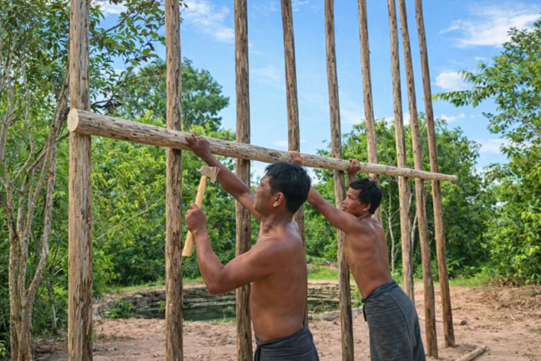 La Construcción Comenzó Con Pilares Cilíndricos Clavados Directamente En El Suelo. En El Centro, Un Tronco Grueso Sirvió Como Eje Principal De La Estructura. Este Detalle Fue Decisivo.