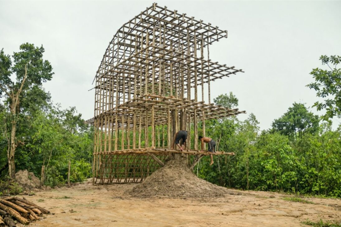 Lo Que Parecía Imposible Sucedió En Medio De La Densa Vegetación. Dos Hombres Iniciaron La Construcción De Una Casa De Bambu De 3 Niveles Partiendo Solo De Un Terreno Limpio, Un Tronco Central Fijado En El Suelo Y Decenas De Varas Alineadas Alrededor.