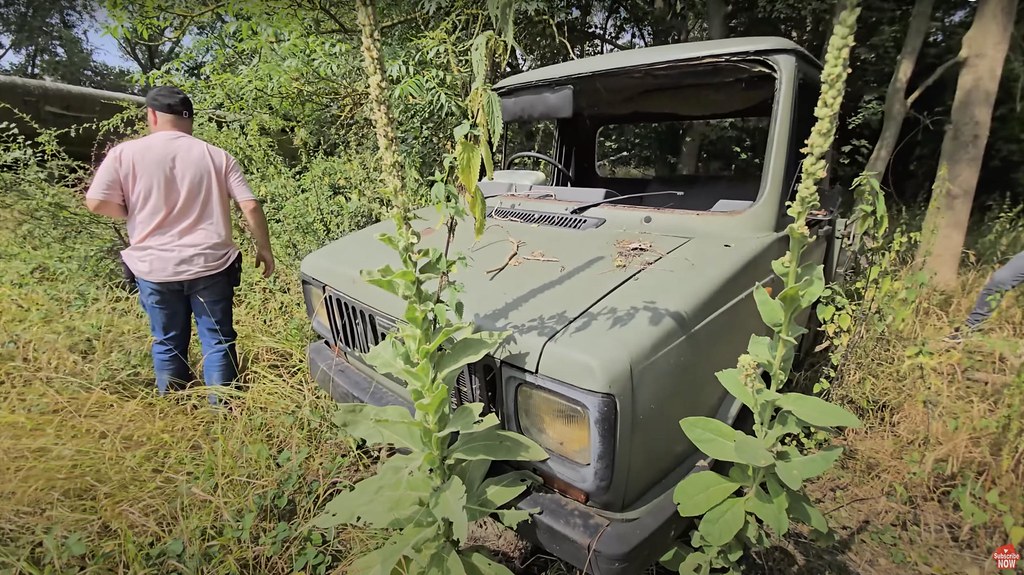 Al lado de la GMC, los exploradores encontraron un dumper de la marca británica Thwaites, comúnmente usado en obras públicas para el transporte de escombros y materiales de construcción. Más distante, una furgoneta LDV Sherpa, fabricada en 1980, completaba una escena peculiar. Este vehículo, con el volante a la derecha, es un ejemplo típico de vehículos británicos de la época, pero su propósito en el bosque sigue siendo un misterio.