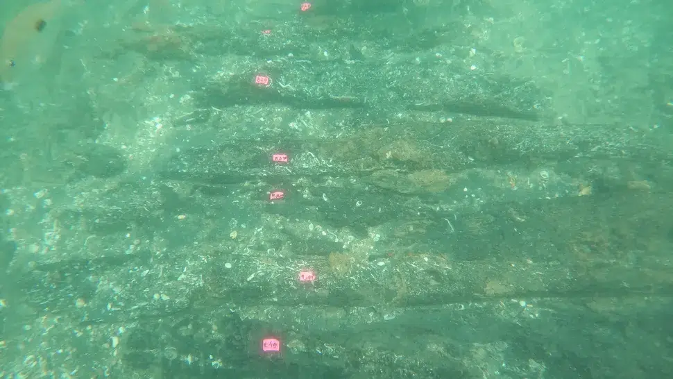 Aunque gran parte de la estructura aún está sumergida, los buceadores desenterraron piezas importantes, como fragmentos de casco y de otros materiales del barco, en dos trincheras arqueológicas.