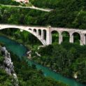 Construida entre 1900 y 1906, el Puente de Solkan tiene un arco ferroviario de piedra de 85 metros de luz, fue destruido en la guerra, reconstruido en 1927 y sigue en operación cerca de Nova Gorica.