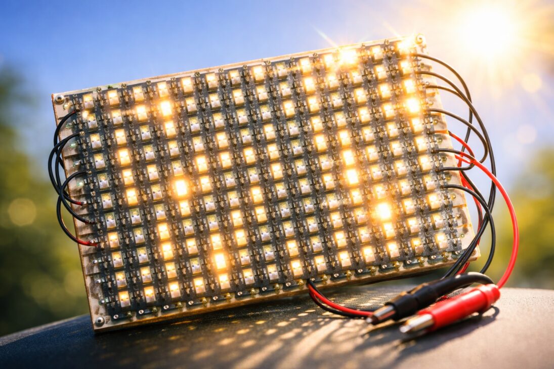Ele descobriu que LEDs comuns podem gerar energia do sol, montou uma placa solar caseira com 200 unidades que alcança cerca de 6 volts e mostrou como transformar componentes simples em um mini painel solar funcional