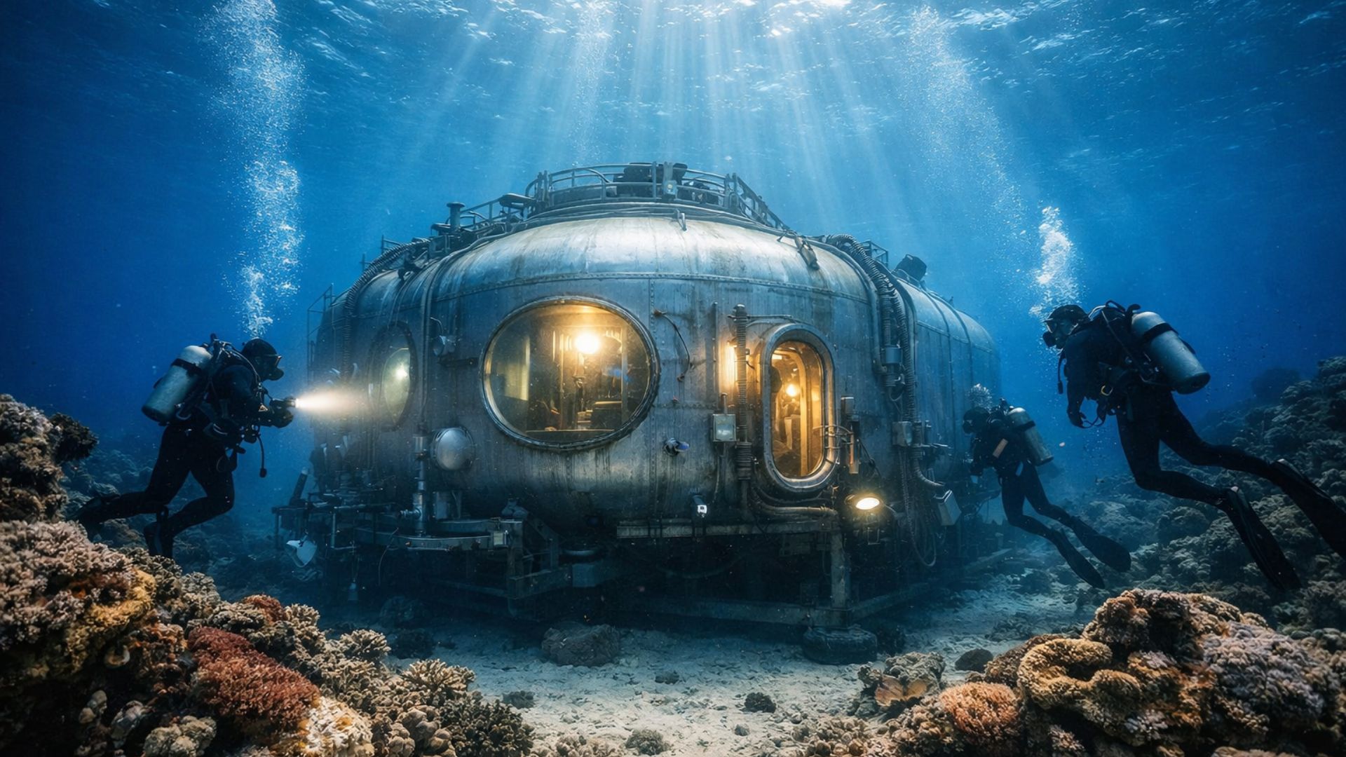En el espacio habitacional, paneles solares alimentan luces y electrodomésticos, mientras un gran tanque recoge agua de lluvia, filtrada y bombeada para el lavabo y la ducha.