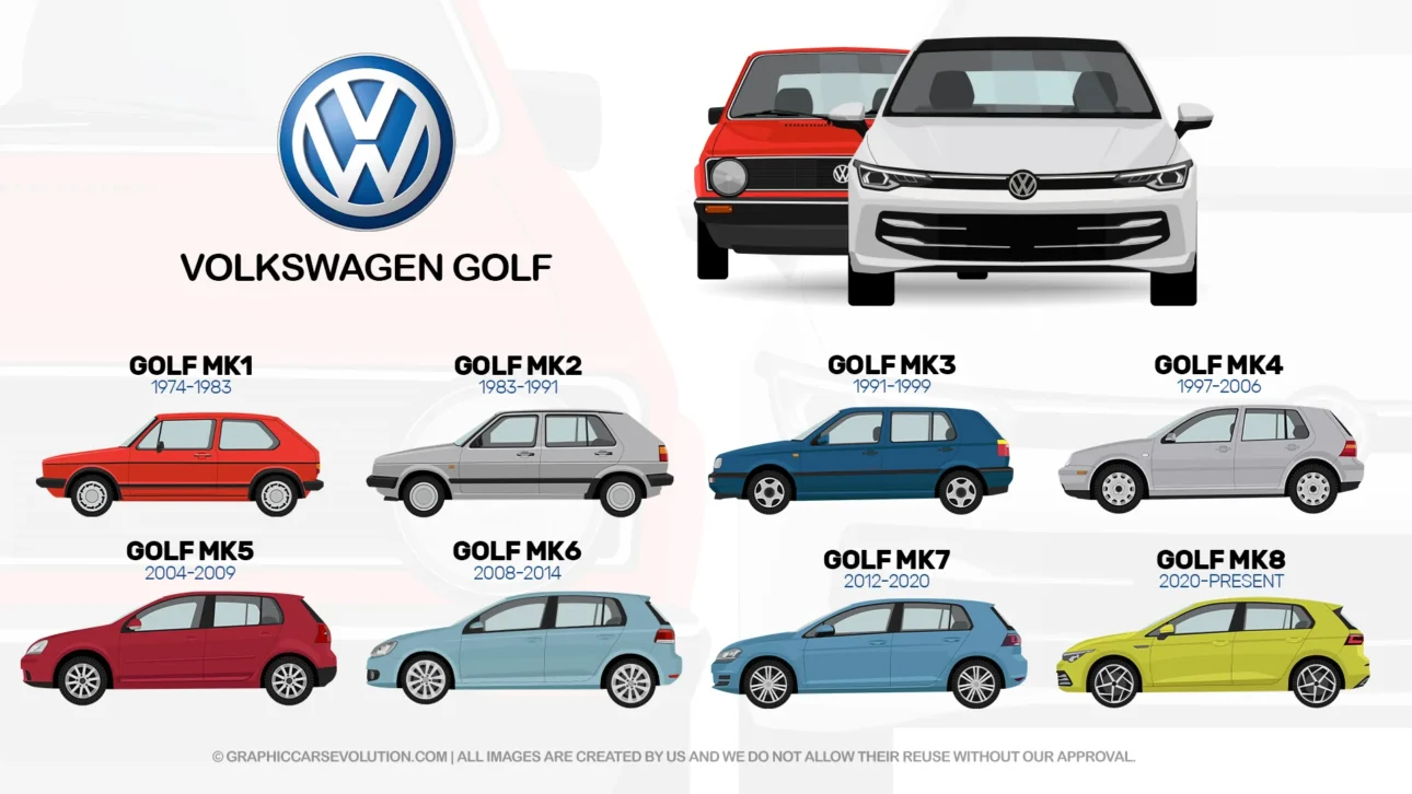 Uno de los factores que ayudaron al Golf a mantenerse en la cima durante tantos años es su capacidad de actualizarse sin perder esencia. Veamos un resumen de las ocho generaciones: