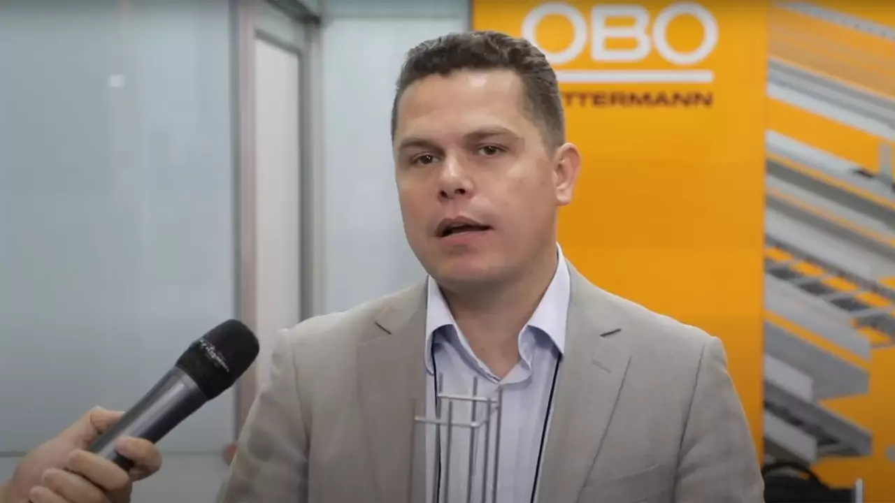 Durante el congreso Brazil Windpower 2022, este martes (18/10), el expositor André Cunha Silva, director gerente de OBO Bettermann en Brasil, afirmó que la empresa trae al país la bandeja de cable de acero con un montaje más rápido en comparación con otros modelos de bandejas de cable. «Funciona básicamente como un lego, esa es la ventaja de la bandeja de OBO Bettermann», dijo André.