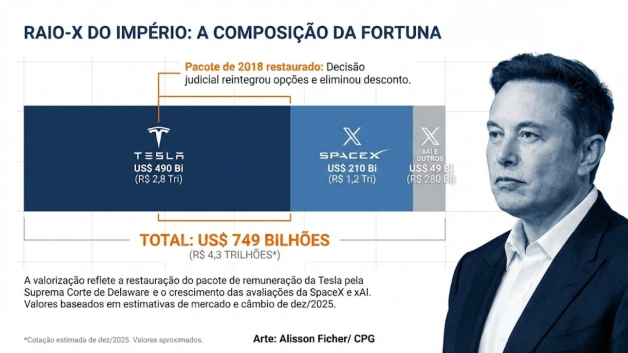La Decisión Judicial en EE. UU. Cambia el Cálculo de la Fortuna de Elon Musk, Recoloca a Tesla en el Centro del Patrimonio y Refuerza el Peso de SpaceX y xAI, Llevando al Empresario a Superar los US$ 700 Mil Millones y Superar el PIB Anual de la Ciudad de São Paulo.