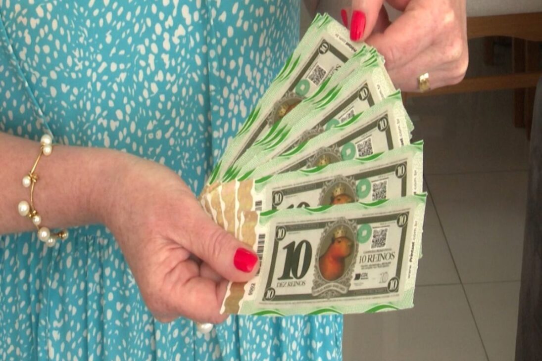 Para fortalecer ese ecosistema, empresarios decidieron crear la moneda Reinos, presentada como un “dinero propio” que, en la práctica, funciona como un voucher de R$ 10 distribuido por las empresas participantes.