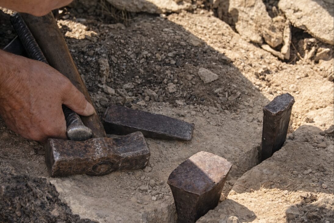 Este momento exige precisión. No se trata solo de romper la piedra, sino de hacerla abrir exactamente en la dirección deseada. Cuando la roca es más blanda, el corte puede escaparse de la línea prevista, obligando al cantero a corregir el proceso a mano, con aún más cuidado.