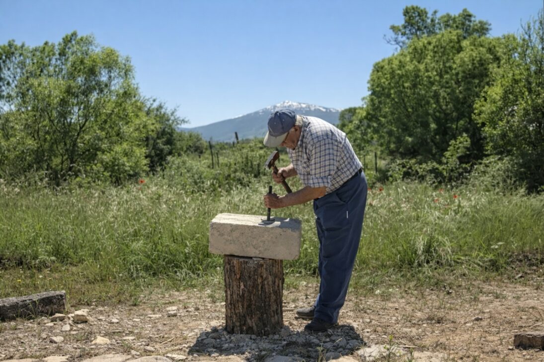 En el Valle Alto del Lozoya, este saber continúa vivo en las manos de Julián. Con martillo, cincel, escuadra y regla, él repite un proceso que exige experiencia, lectura de la piedra y control absoluto de los golpes. El resultado no nace de la prisa, sino de la observación y del dominio de una técnica que ha atravesado generaciones.