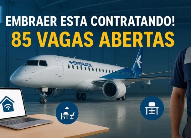 La Embraer, uno de los mayores fabricantes de aeronaves del mundo, anunció la apertura de 85 vacantes de empleo en el estado de São Paulo. Las oportunidades están distribuidas entre las unidades de la empresa en ciudades como São José dos Campos, Gavião Peixoto y Botucatu, además de opciones para trabajo remoto.