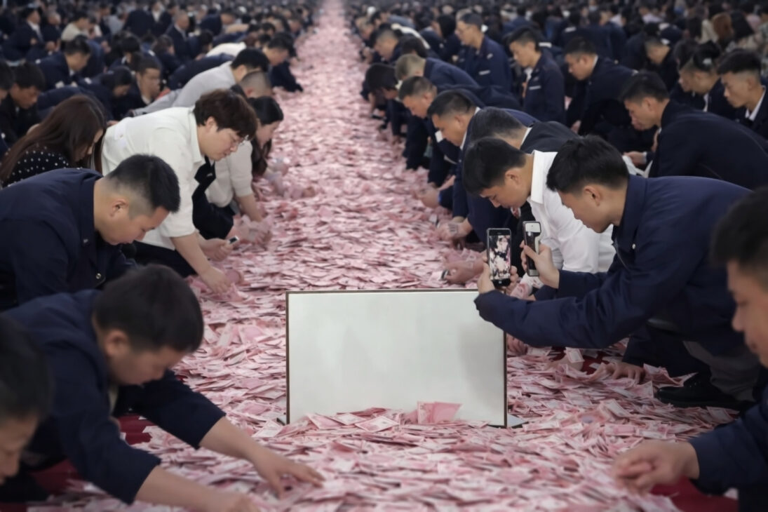 Olvídate de las tradicionales cestas de fin de año y los kits de prensa personalizados. En China, un presidente decidió elevar el concepto de bono corporativo a otro nivel. En una escena que rápidamente se volvió viral en las redes sociales, Cui Peijun arrojó 180 millones de yuanes — alrededor de US$ 26 millones — en efectivo sobre las mesas del evento anual de la empresa y permitió que los empleados llevaran todo lo que pudieran cargar con sus propias manos.