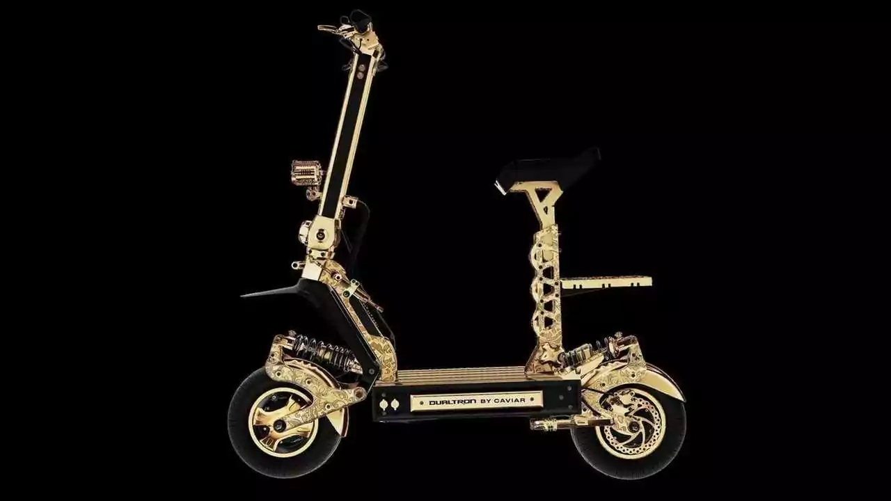 El mercado de lujo y personalización de vehículos es sin límites. Una prueba de ello es la Caviar Royal Gift, una empresa con sede en Dubái que se dedica a la personalización de objetos cotidianos y que presentó su más nuevo desarrollo: un lujoso patinete eléctrico bañado en oro que puede alcanzar hasta 100 km/h de velocidad máxima.