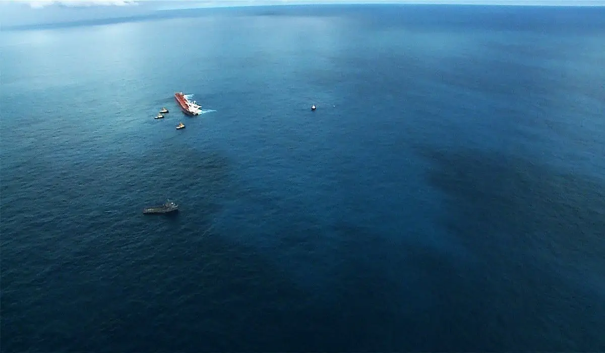 Después de que el comandante encallara intencionadamente el barco en un banco de arena, más de 333 litros de aceite ya se han filtrado del barco y se han esparcido por un área de 0,79 km², según Ibama. Con temor a una tragedia ambiental de mayores proporciones, representantes de Polaris (propietaria de la embarcación), Vale (que abasteció el barco) e Instituto Brasileño del Medio Ambiente y de los Recursos Naturales Renovables (Ibama), decidieron utilizar la técnica de ‘dispersión mecánica’ en la que bacterias marinas absorben el aceite ya esparcido en el agua.