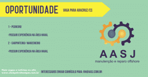Más algunas oportunidades de trabajo actualizadas y publicadas hace pocos días por las AASJ Mantenimiento y Reparos Offshore, empresa que posee polos operacionales en la ciudad de Macaé, Río de Janeiro y en Aracruz, en el Espírito Santo. Cabe resaltar que las vacantes y las oportunidades de hoy son para Aracruz, a fin de que actúen en la industria naval, en el astillero EJA (Astillero Jurong Aracruz). Confirmen las vacantes y los requisitos: